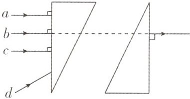 显然最左侧的入射光线与最左侧的玻璃面垂直,并且在b 光线的下方,故入射光线只可能是c.故选C.