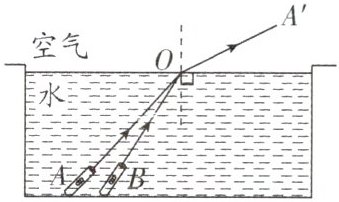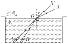 8. (2024·河南中考)如图,观光水池中,一束红光沿AO方向从水射入空气,折射光线为OA'.若另一束红光沿BO方向从水射入空气,请大致画出入射光线BO的折射光线,并标出对应的折射角r.