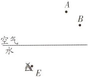 7. (2025·常州金坛区期中)如图所示,平静的湖边有一盏路灯,潜水员在水下E处看到了路灯的像,图中A、B两点,其中一点是路灯,另一点是路灯的像.请画出水下E处的潜水员看到路灯的光路图.