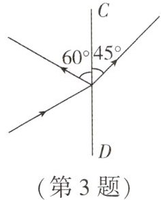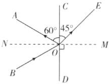 C 解析:已知CD是界面,过入射点O作出法线,则由图可知,∠AOC = 60°,BO为入射光线,OA为反射光线,OE为折射光线,反射角为∠NOA = 90° - 60° = 30°.根据反射规律,入射角为∠NOB = 30°,折射角∠EOM = 90° - 45° = 45°>30°.当光线从其他介质斜射入空气时,折射角大于入射角,所以CD的右侧是空气,左侧是玻璃,故C正确.
