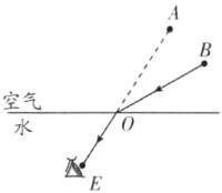 解析:人的视线是直的,所以人的视线与路灯的像是一条直线,连接眼睛处的E点与点A,EA与界面的交点即为入射点O,OE就是折射光线,连接B、O,BO就是入射光线.