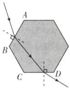 解析:光从六棱冰晶的AB面斜射入冰晶,传播方向向法线方向偏折,在冰晶的CD面,当光从冰晶斜射入空气中时,折射光线向远离法线方向偏折.