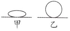 7. 小明将水滴在透明玻璃纸上,透过水滴观察报纸上的字,发现变大了,这个水滴相当于一个凸透镜,如图甲所示,通过“嫦娥一号”把它带到太空中,水滴由于不受重力,会变得如图乙所示,则在太空中,该水滴透镜 ()