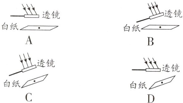 1. 小明利用太阳光测量凸透镜焦距,下列操作最合理的是 (
