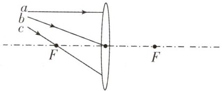 4. (2024·内江中考)如图,F是凸透镜的焦点,a、b、c是三条入射光线,请画出这三条光线经凸透镜后的出射光线.