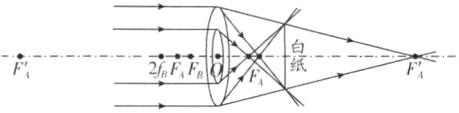 由图可知透镜A的焦点有两种可能,一种在白纸和透镜之间,一种在白纸的右侧,无论哪一种其焦距都比透镜B的焦距大,光学元件远离白纸时,相当于光学元件不动,白纸向右移动;由图可知,凸透镜A有两种可能,当A的焦点在透镜和白纸之间时,白纸向右移动时光斑变大,当A的焦点在白纸右侧时,白纸向右移动时光斑先变小后变大;而凸透镜B只有一种情况,光斑一直变大;所以,光学元件远离白纸时,两个光斑可能不同时变大,故B正确,AC错误;D.物距不变,透镜A的焦距比透镜B焦距大;凸透镜成实像时,焦距大的像就大,即透镜B成像比透镜A小;凸透镜成虚像时,焦距大的像就小,即物距在透镜和B的焦点之间时,透镜B成像比透镜A的大,故D错误.故选B.