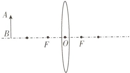 13. 图中物体AB在凸透镜两倍焦距以外,请画出AB经凸透镜所成像A'B'的大致位置.