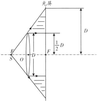 (2)在准确测量焦距时,小明发现在光屏上光斑外侧还有一个暗环,他猜想可能是凸透镜的边框造成的,于是他拆除边框直接将凸透镜固定在原位置,进行实验验证,发现暗环仍然存在.你认为暗环形成的原因是光的直线传播和光的____;若光源在左焦点处,光屏在右焦点处,如图所示,则暗环的面积是____.