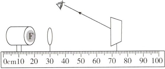 10.0 左 解析:由题图可知,此时$u = v = 20.0cm$,根据$u = v = 2f$,成倒立等大的实像,故该凸透镜的焦距为$f=\frac{1}{2}u=\frac{1}{2}×20.0cm = 10.0cm$.固定凸透镜位置,他将蜡烛移到15cm刻度处,此时物距增大,根据凸透镜成实像时,物远像近像变小可知,为了在光屏上得到清晰的像,接下来小明应该将光屏适当向左移动.