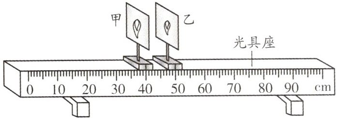 10. 如图所示,凸透镜位于P处(图中未画出)位置不变,移动蜡烛,光屏先后在P同侧的甲、乙两处得到烛焰清晰的像,且甲处的像比乙处大,则()