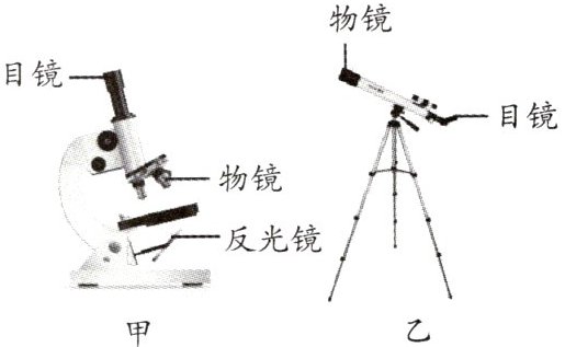 6. 如图甲所示,显微镜的物镜的成像原理与生活中的______相同,目镜的作用则像一个放大镜;如图乙,望远镜的物镜的成像原理与______相同,目镜的成像原理与______相同.(均填“照相机”“投影仪”或“放大镜”)