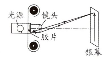 9. 如图所示,小明利用凸透镜成像原理来研究电影放映时银幕上的影像情况.