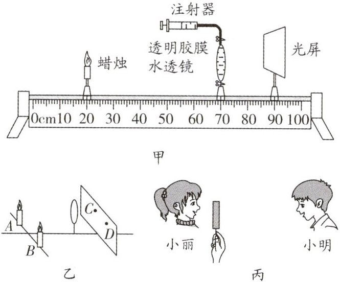 (2)如图甲所示,将蜡烛靠近水透镜,光屏上的像模糊了,不移动蜡烛和水透镜,应在水透镜中____(填“注水”或“抽水”),或者将____眼镜放在蜡烛和水透镜之间,才能在光屏上再次得到清晰的像.