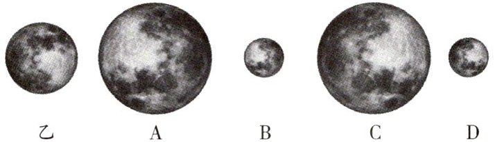 (2)中秋节小滨用肉眼看到的月亮如图乙所示,则他利用望远镜看到的像是____(填字母).