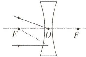 凹 发散 解析:由题意可知随着试管向下移动至浸没前,成正立、缩小的像,说明是凹透镜成像,凹透镜对光线具有发散作用