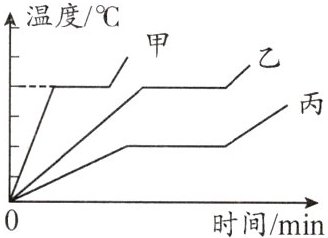 熔化 吸热 甲、乙、丙 甲、乙 乙 解析:从图中可以看出甲、乙、丙三物质随着时间的增加,温度先上升,再不变,再上升,属于晶体熔化图像,故三者都属于晶体,熔化过程中吸收热量.甲和乙的熔点相同,故它们有可能是同种物质,如果二者是同种物质,初温相同,乙从固态加热到熔化时需要的时间长,即乙需要吸收更多的热量才能熔化,说明乙的质量比甲的质量大.