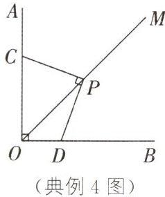 典例4 如图,∠AOB=90°,OM是∠AOB的平分线,将一个直角的顶点P在射线OM上滑动,两直角边分别与OA,OB交于点C,D. 求证:PC=PD.