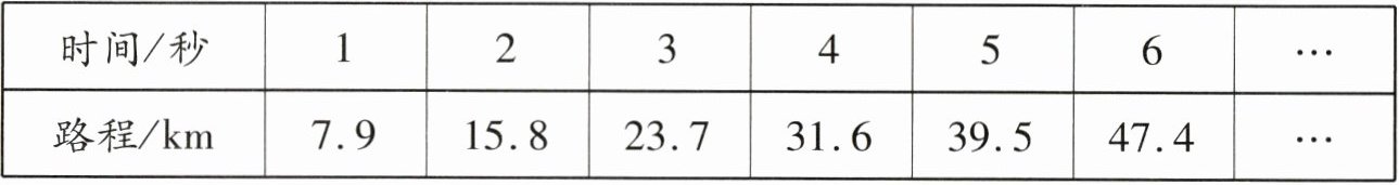 |路程/km|7.9|15.8|23.7|31.6|39.5|47.4|...|