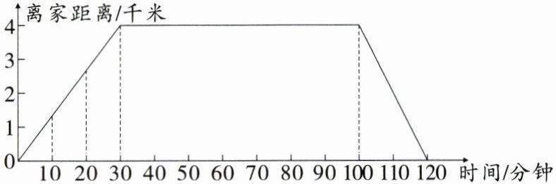 8. 小红从家去4km外的图书馆看书,从右边的统计图可以看出,她在图书馆看书用去( )分钟,去时的速度是每小时行( )km。