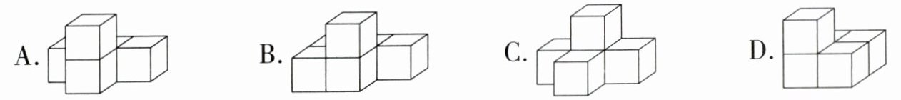 6. 观察下面物体,从左面看到的图形与其他物体不同的是( )。