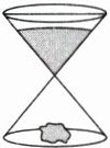 3. (河南郑州)欢欢一家到餐馆吃饭。点完菜后服务员把一个沙漏摆到桌上,并且说“给您计个时,沙漏漏完前您点的菜都会上桌。”欢欢发现这是一个上下均为圆锥的沙漏(如图),两个圆锥的底面直径均是10厘米,高均是6厘米。沙漏上面的圆锥中装满沙子,如果每分钟漏掉10立方厘米的沙子,那么按服务员的承诺最迟多少分钟后欢欢一家点的菜都会上桌?(4%)