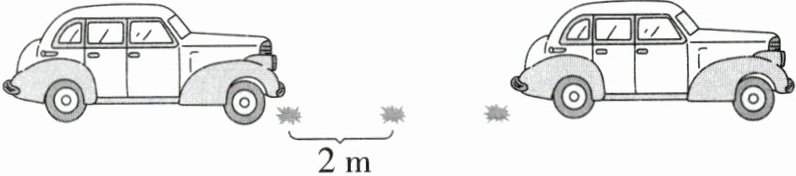 11. 一辆行驶中的小汽车前轮压碎了掉在地上的冰激凌,在路上留下了几个印记。冰激凌与第一个印记之间的距离大约是 2 m,这 2 m 表示( )。