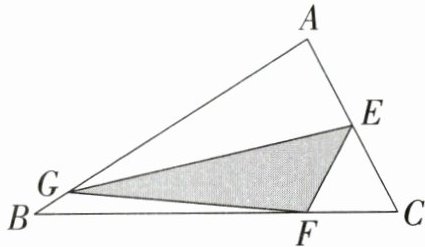 15. 如图:三角形ABC的面积是$18cm^2$,$AE= \frac{1}{2}AC$,$FC= \frac{1}{4}BC$,$BG= \frac{1}{6}AB$,涂色部分的面积是( )$cm^2$。
