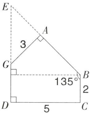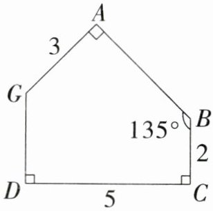 2. 已知一个五边形ABCDG的三条边和四个角的度数(如图所示),那么这个五边形的面积是多少?(单位:cm)