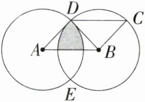 1. 如图,两个半径相等的圆,点A、点B为圆心,三角形DBC是等腰直角三角形,面积是$100cm^2$,四边形ABCD是平行四边形,图中涂色部分的面积是多少?