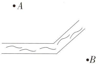 2.(湖北武汉)如图,从A、B两点各挖一条水渠与河道相通,要使水渠最短,应该怎样挖? 请你在图中画出来。如果这幅图的比例尺是$\frac{1}{2000}$,那么从点A挖的水渠实际长约(