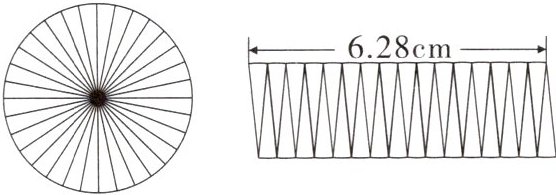 例2 在探索圆的面积计算公式时,把圆平均分成32等份,然后拼成了一个近似的长方形(如图),这个长方形的周长是(