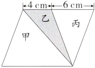 2. (安徽合肥)把平行四边形分成甲、乙、丙三部分,如果乙的面积比丙少$8cm^{2}$。那么平行四边形的面积是(