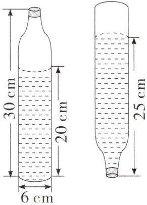 5. (广东广州)一个高是30 cm的酒瓶里盛有酒,把它倒置在桌面上(如图所示)。酒瓶的容积是多少?