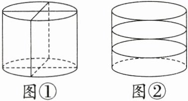 用图②方式切,表面积增加4个底面 $50.24÷ 4÷ 3.14=4$($cm^2$) $4=2× 2$ 底面半径为2 cm;底面直径为4 cm 用图①方式切,表面积增加4个截面 高:$48÷ 4÷ 4=3$($cm$) 圆柱体积:$3.14× 2^2× 3=37.68$($cm^3$)