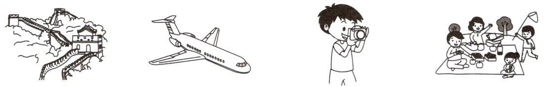 这是一篇看图写作,要求用英语介绍Mike去年暑假的旅行经历。同学们可以先仔细观察四幅图的内容,由第一幅长城图可知,Mike去了北京;由第二幅飞机图可知,他是乘飞机去的;由第三幅拍照图以及第四幅野餐图可知,他做的事情和心情。注意:描写过去的活动时,动词应用过去式。