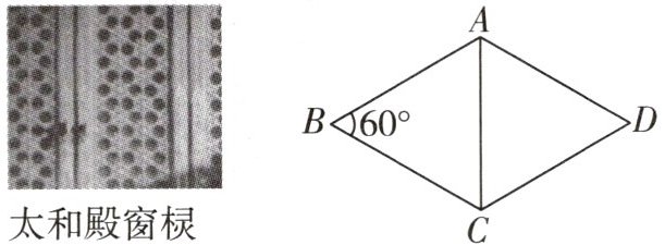 5 新情境[2025兰州期中]小明在参观故宫博物院时,被太和殿窗棂上的三交六椀菱花图案所吸引,他从中提取出一个含$ 60^{\circ} $角的菱形ABCD(如图所示),若边AB的长度为a,则对角线AC的长度为 (