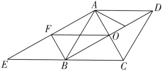 4 [2025 深圳红岭教育集团期中]如图,在菱形 ABCD 中,对角线 AC,BD 相交于点 O,延长 CB 到点 E,使得$BE= BC$.连接 AE,过点 B 作$BF// AC$,交 AE 于点 F,连接 OF.