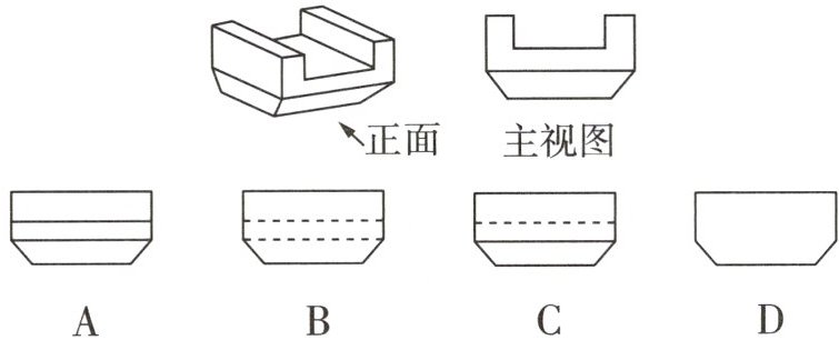 C 从左面看,上面部分是矩形,下面部分是梯形,矩形部分有一条看不见的线,画为虚线.