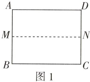 第一步,如图1,将矩形纸片对折,使AD与BC重合,得到折痕MN,将纸片展平。