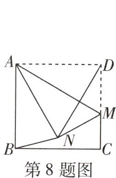 8 [2024重庆育才中学期中]如图,在正方形ABCD中,点M在CD上,将△ADM沿着AM翻折得到△ANM,连接BN,DN。若∠NDM= 30°,则∠ABN的度数为______。