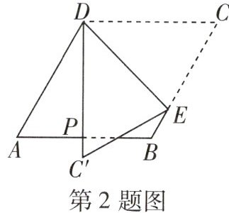 2 [2024济宁期末]如图,在菱形纸片ABCD中,∠A= 60°,折叠菱形纸片ABCD,使点C落在DP(点P为AB的中点)所在的直线上,得到经过点D的折痕DE。则∠BEC'的大小为______。