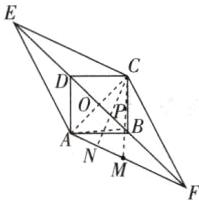 3 [2025晋中段考]如图,四边形ABCD是边长为1的正方形,分别延长BD,DB至点E,F,使$BF= DE= \sqrt{2}.$连接AE,AF,CE,CF.