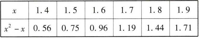 (2)细计算:在确定的取值范围内均匀地取一些$x$的值,计算出对应的代数式$ax^{2}+bx+c$的值,进一步缩小解的范围。(3)比较:比较计算的结果,确定方程的近似解。