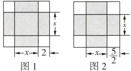11 新趋势·过程性学习 [2025 北京人大附中期中]《代数学》中记载,形如 $x^{2}+8x = 33$ 的方程,求正数解的几何方法是:“如图 1,先构造一个面积为 $x^{2}$ 的正方形,再以正方形的边为一边向外构造四个面积为 $2x$ 的矩形,得到大正方形的面积为 $33 + 16 = 49$,则该方程的正数解为 $7 - 4 = 3$。”小聪按此方法解关于 $x$ 的方程 $x^{2}+10x + m = 0$ 时,构造出如图 2 所示的图形,已知阴影部分的面积为 50,则该方程的正数解为(