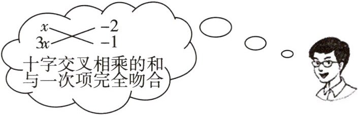 = 0。(2) 爱钻研的小明同学发现二次项系数不是 1 的方程也可以借助此方法求解。如方程 $ 3x^{2} - 7x + 2 = 0 $ 可变形为 $ (x - 2)(3x - 1) = 0 $,从而可以快速求出方程的根。