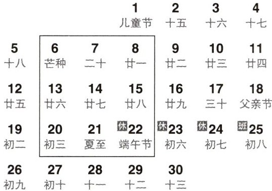 1 [2024镇江期中]如图是某年6月的月历表,在此月历表上可以用一个矩形圈出3×3个位置相邻的9个数(如6,7,8,13,14,15,20,21,22).若圈出的9个数中,最大数与最小数的积为192,设这个最小数为x,则下列方程正确的是 (