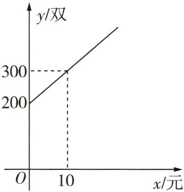 设y与x的函数关系式为$y=kx+b(k≠0)$,将$(0,200),(10,$300)分别代入$y=kx+b$,得$\left\{\begin{array}{l} b=200,\\ 10k+b=300,\end{array}\right. $解得$\left\{\begin{array}{l} k=10,\\ b=200,\end{array}\right. $