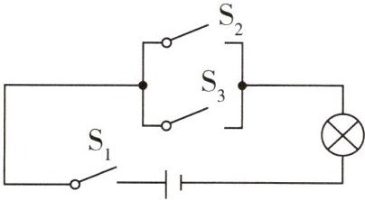 由树状图可知,共有 6 种等可能的结果,其中灯泡能发光的结果有 4 种,所以灯泡能发光的概率为 $\frac{4}{6}=\frac{2}{3}$.