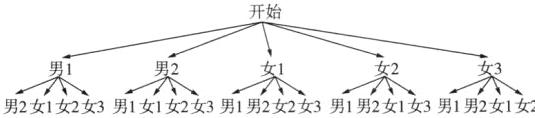 $\frac{3}{5}$ 先将 2 名男生分别记作男 1,男 2,3 名女生分别记作女 1,女 2,女 3,画树状图如下: