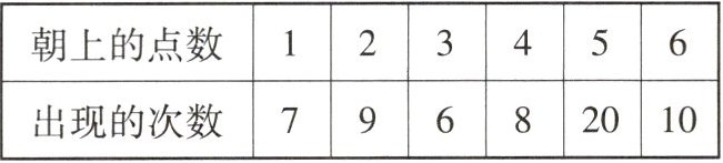 (1)①此次试验中“5点朝上”的频率为$20÷60=\frac{1}{3}$。